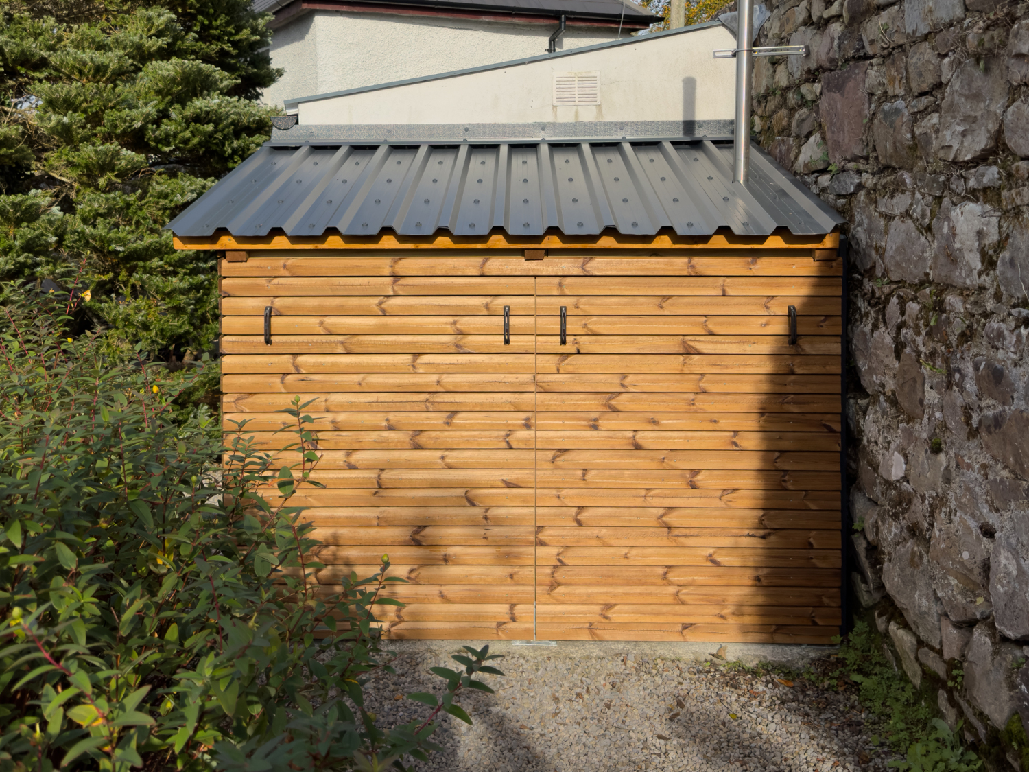And finally, we could not resist giving the generator a home that matches both its technical importance and our architectural standards. The elegant outdoor structure, which presents itself with the discreet appearance of a modern garden shed, is in truth a genuine powerhouse.